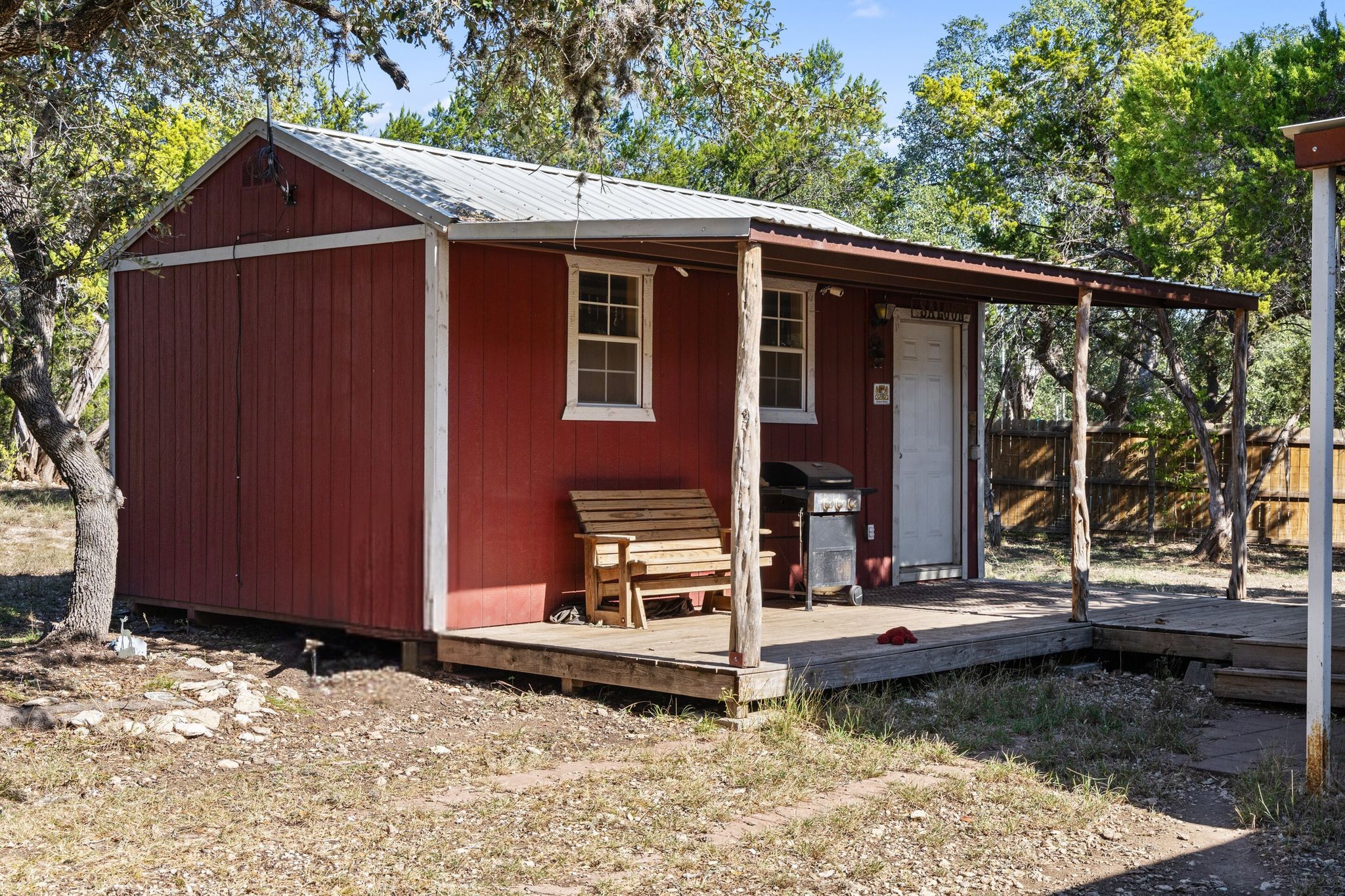 Positioned in one of the fastest-growing lake communities in the Hill Country, this unique property offers an exceptional investment opportunity with immediate income and significant long-term upside. Spanning 20.58 unrestricted acres, this versatile property delivers a rare combination of natural beauty, development flexibility, and strong cash-flow potential. Potters Creek lines the entire southern border, creating a private and scenic natural boundary, while a well-fed pond welcomes you at the entrance. The included half-acre lot in Rocky Creek Ranch directly adjoins the main acreage and provides a valuable 2" water line from Texas Water Company—an infrastructure advantage that enhances future expansion or redevelopment options. With the ability to subdivide into smaller tracts or extend the existing improvements, the land itself is the foundation for endless investment possibilities.