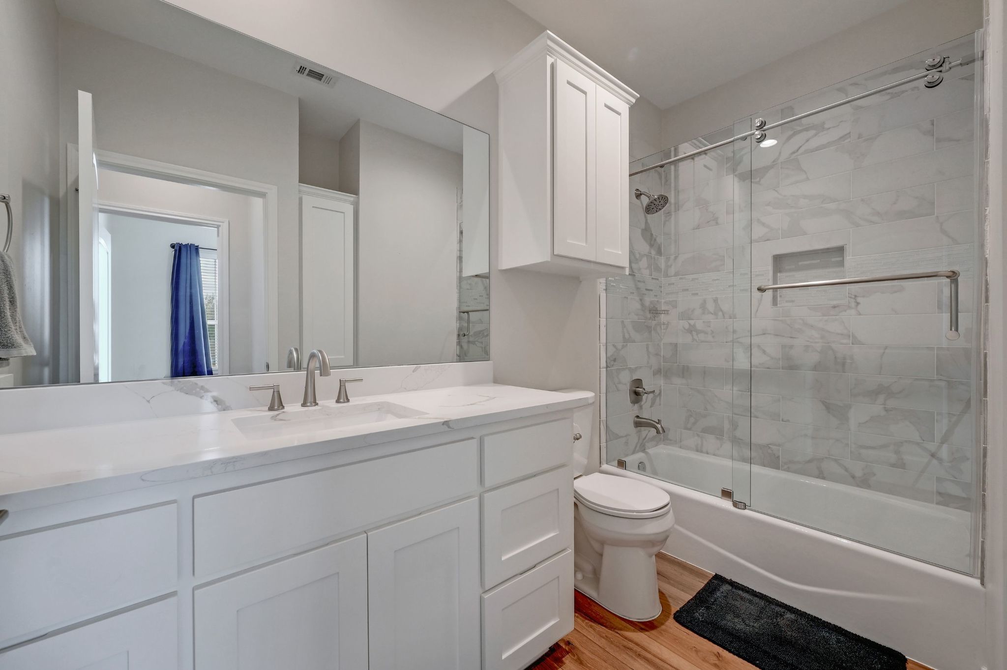 The split floor plan provides privacy with the spacious primary suite situated at the rear of the home. The luxurious primary bath includes a frameless glass shower, large stand-alone soaking tub, dual vanities, & two walk-in closets. Two additional guest bedrooms, bonus room, & a large laundry room provide convenience & comfort for the whole household.