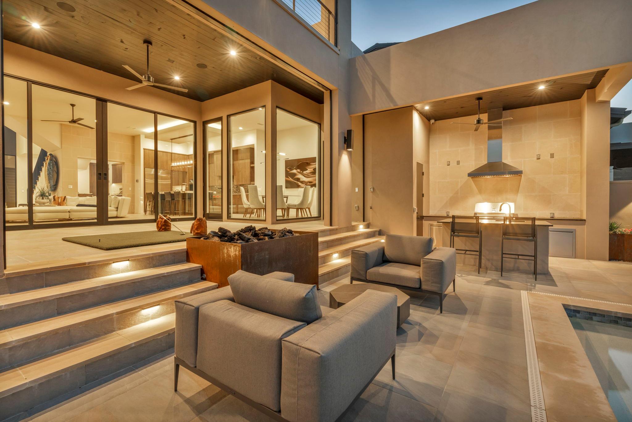 A fully furnished, turn-key option is available for this contemporary home, situated high on a gated peninsula, overlooking the waters of Lake LBJ. Immerse yourself in the luxurious lifestyle offered by Escondido, Horseshoe Bay, and Lake LBJ. The available La Cascada membership allows four parties to share the home with only one membership fee, making this an ideal vacation home! Designed with elegance and comfort in mind, the home boasts top-of-the-line appliances, a stunning waterfall island, and an open living space featuring a floating gas fireplace and a wet bar. The expansive master suite offers direct access to a private patio seating area with a TV above agas fireplace. The lower level also includes a home office, a powder room, and a guest casita with its own entry. The upper-level game room is furnished with top-notch entertainment features plus a wet bar, with access to a large covered and screened deck. Enjoy the breathtaking lake views shooting pool with a drink in hand! Two beautifully appointed guest suites complete the upstairs. Experience luxury outdoor living with a heated pool and spa, an outdoor kitchen, and a fire pit perfect for cooler evenings. Home features include a fully automated patio shade system, energy-efficient smart home, spider-be-gone system, fiber optic internet. Car enthusiasts will appreciate the two separate garages, each equipped with custom-built cabinets. Owners enjoy an exclusive equity club membership to the premier amenities at Escondido Lake & Golf Club.
