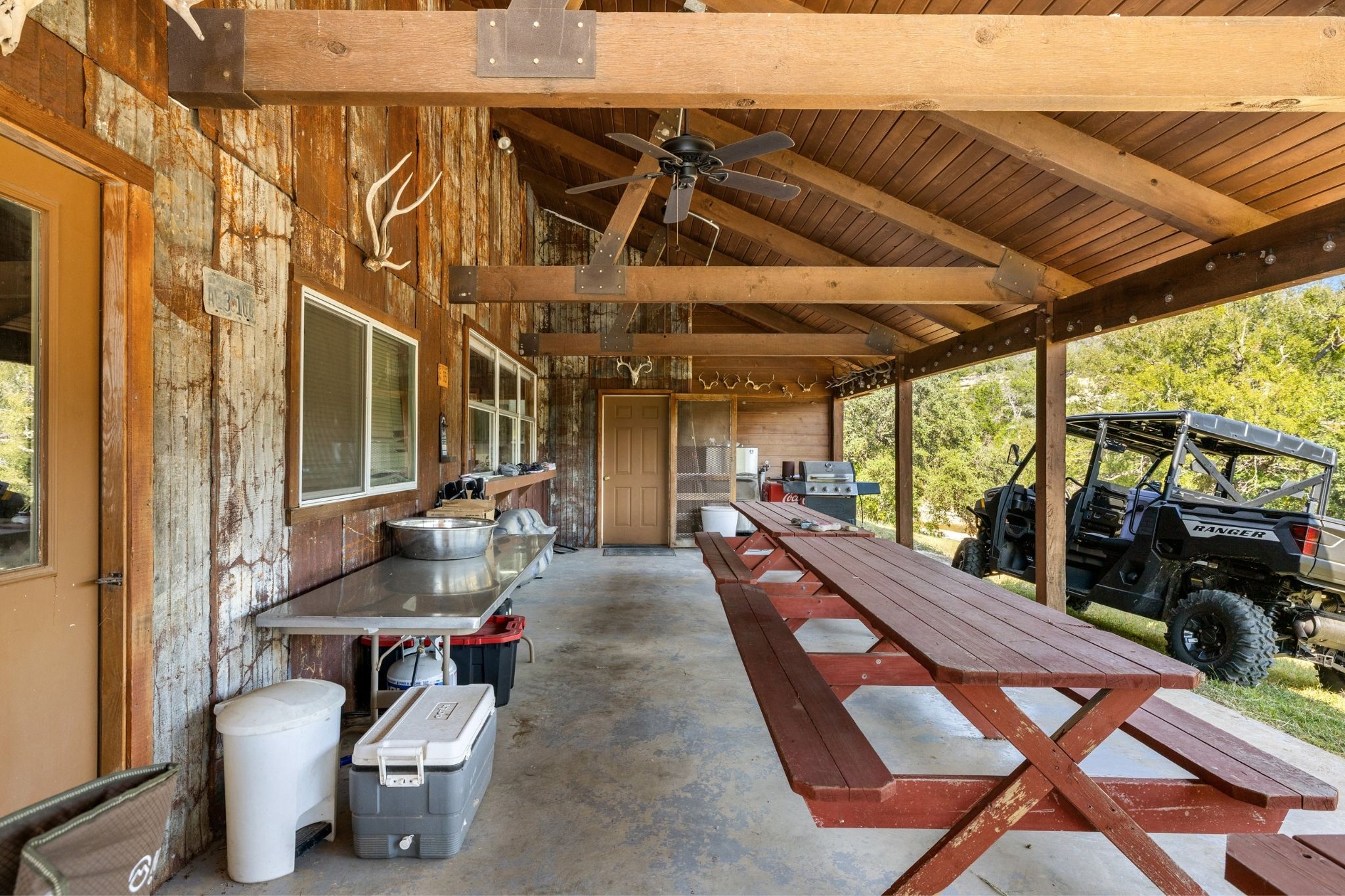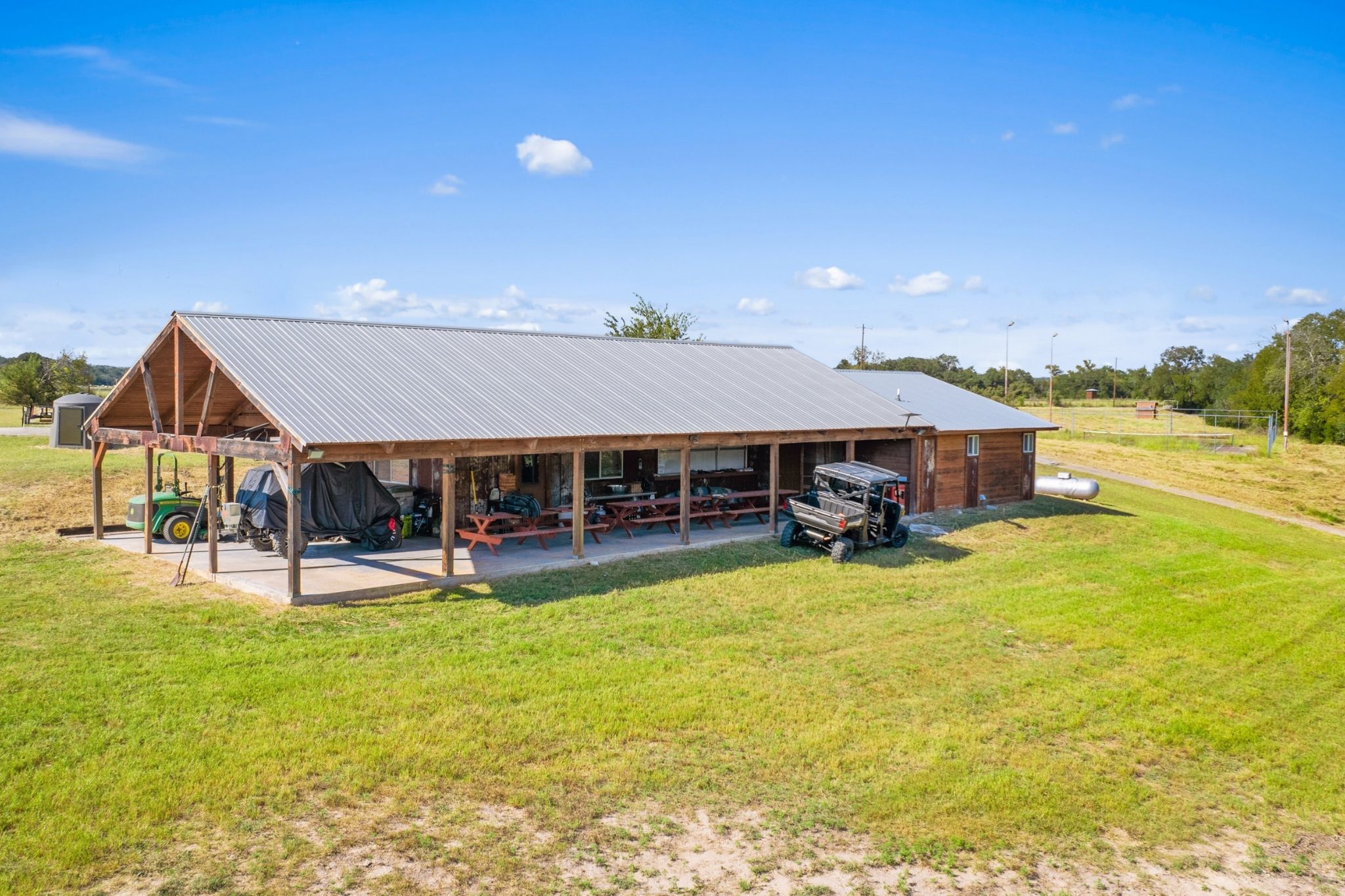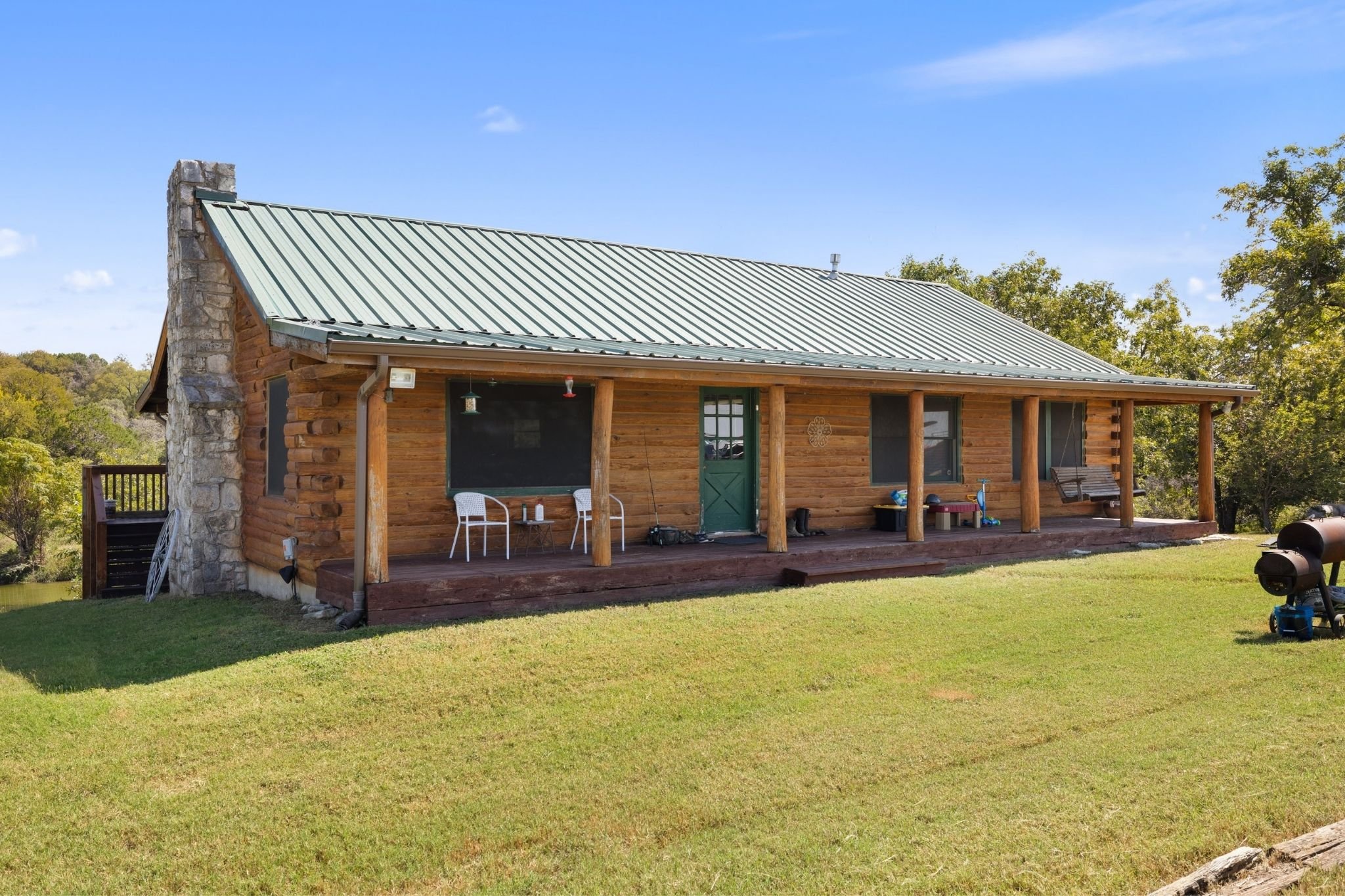 IMPROVEMENTS: Rocky Creek Ranch is fully equipped and ready to enjoy from day one! The log-cabin style main home on the water's edge spans 2,665 square feet with 4 beds and 3 baths, blending rustic charm with everyday comfort. A guest/hunter's cabin offers 3 beds and 2 baths, while a nearby pavilion, swimming pool, and oversized smoker/grill create the perfect setup for entertaining. The ranch also features a skeet shooting range, adding to the wide range of recreational opportunities on the property. Whether gathering with family, hosting friends, or simply unwinding in nature, this property is designed for memorable experiences that can be shared for generations.