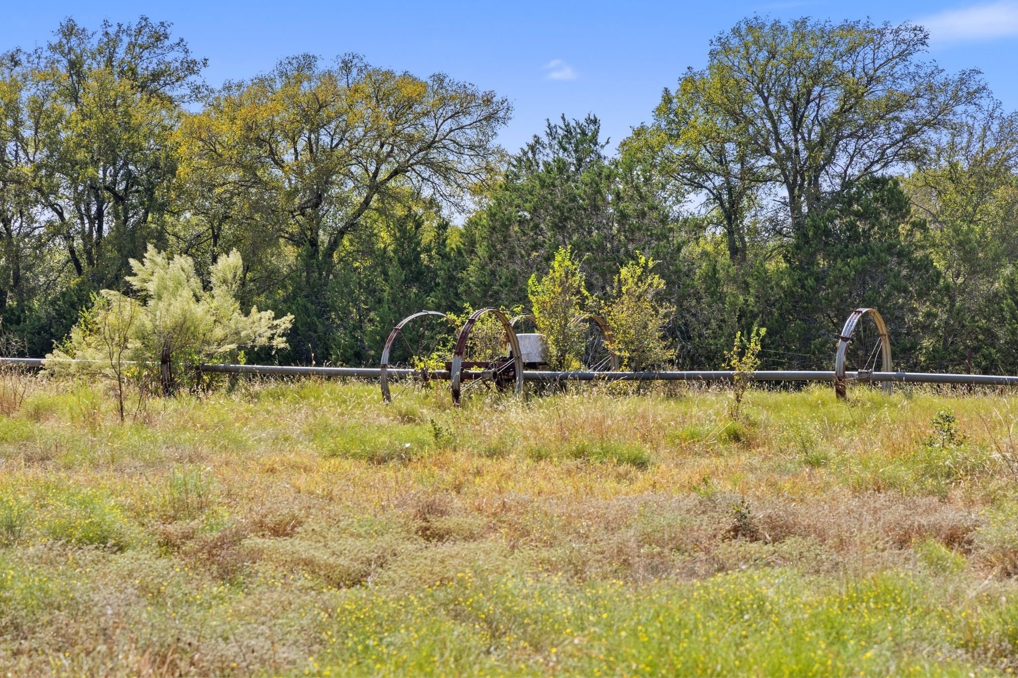 LAND, WILDLIFE, & RECREATION: Spanning 500± acres of rolling hills and natural bluff lines, the ranch features approximately 180 feet of elevation change and an abundance of mature oak trees. The land is high-fenced on three sides, offering privacy and supporting thriving populations of whitetail deer, turkey, bass, catfish, and perch. With an agricultural exemption in place, irrigation rights from Rocky Creek, and no restrictions, the property offers both flexibility and opportunity.